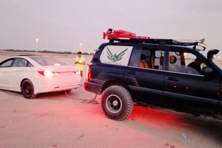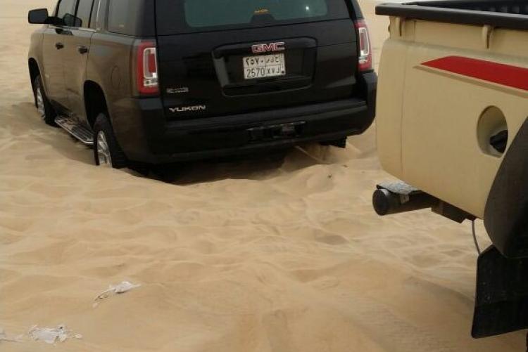 يباشر فريق غوث بلاغ عن عده سيارات علقت بالنفوذ بالقرب من الطوقي