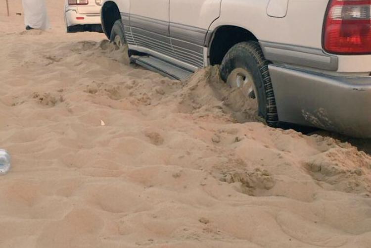 مازال يباشر فريق غوث عده بلاغات عن سيارات علقت بالرمال والطين بشاطئ الهاف مون