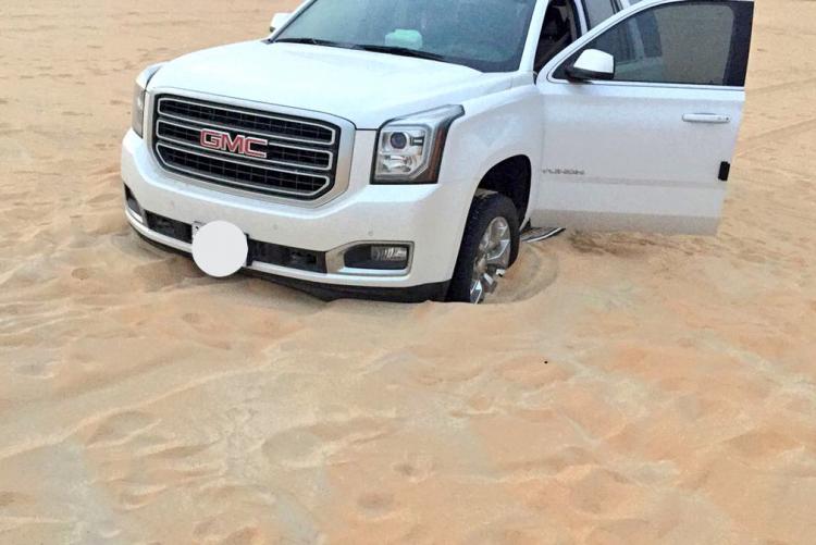 تلقى فريق غوث بلاغا عن سياره علقت بالنفوذ