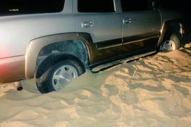 يباشر الآن فريق غوث إخراج سيارة عالقة بالرمال