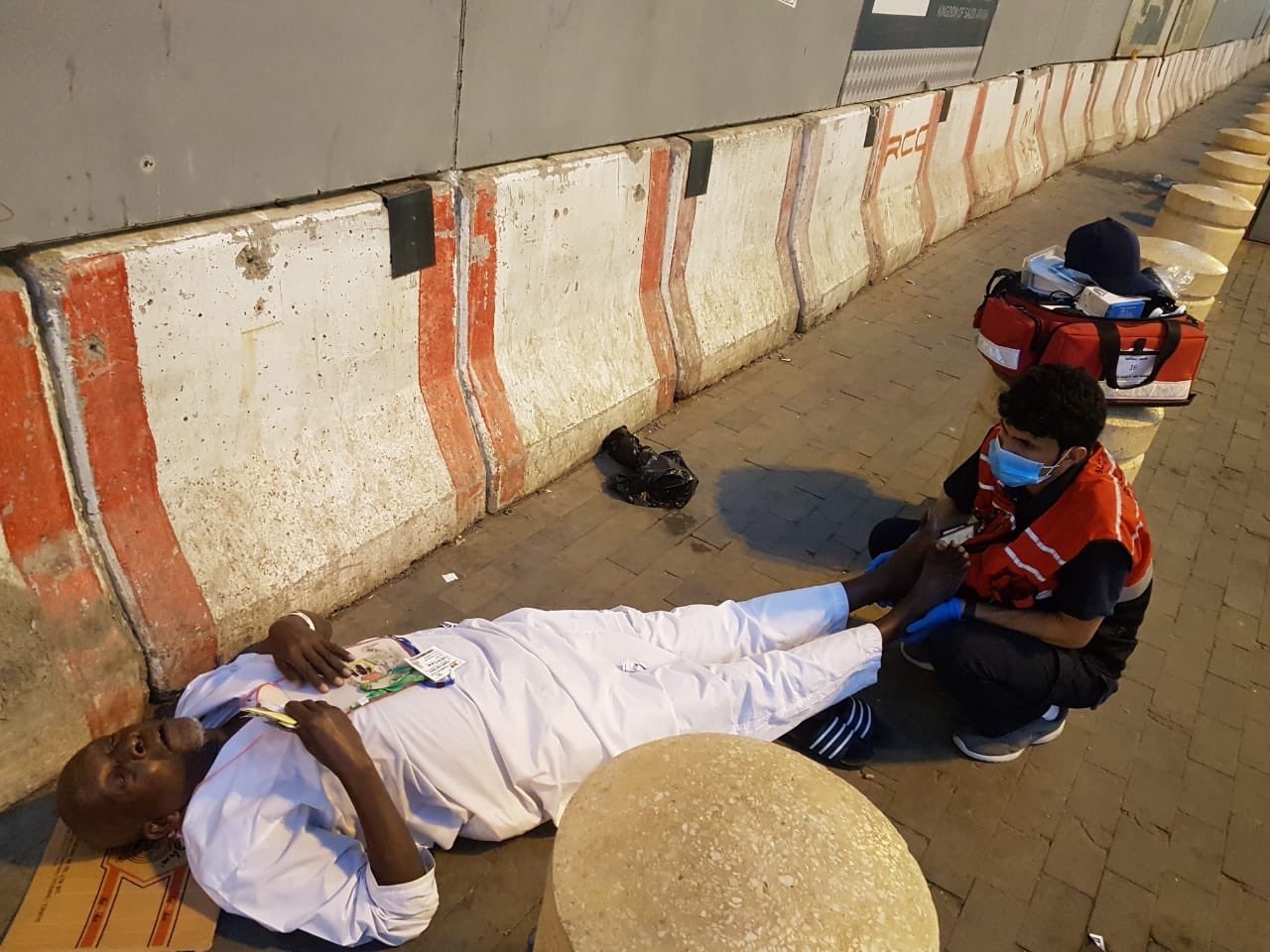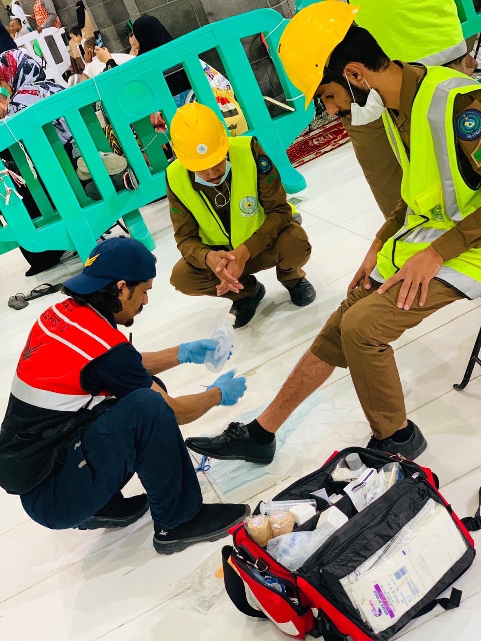 من الحالات الاسعافية التي باشرها أعضاء جمعية غوث في الحرم المكي الشريف وطرقاته هذا المساء في موسم حج ١٤٤٠هـ