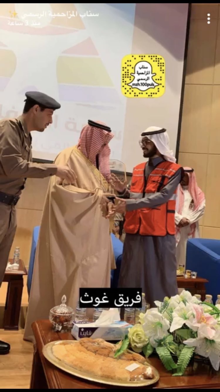 كرم محافظ المزاحمية جمعية غوث في اليوم العالمي للدفاع المدني بحضور مدير الدفاع المدني بالمزاحمية وذلك على جهود فريق غوث الميدانية في مساندة الدفاع المدني في إخراج السيارات العالقة في الرمال والطين