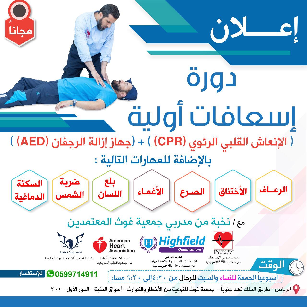 تعلن جمعية غوث عن تقديم دورة إسعافات أولية